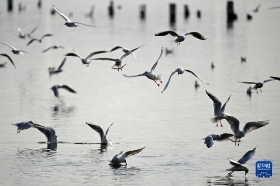 初冬時(shí)節(jié),天津市迎來候鳥遷徙高峰期,不少海鷗從寒冷的西伯利亞遷徙到濱海新區(qū)老碼頭附近的海河岸邊越冬,吸引游人前往觀賞。