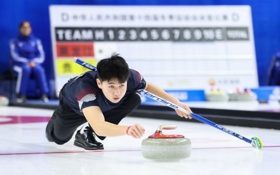 ??1月9日,內(nèi)蒙古隊選手李楊在混雙第一輪比賽中擲壺。最終,內(nèi)蒙古組合李楊/渠偌萱6:7不敵山西組合齊珈銘/張楚楚。新華社記者 王楷焱 攝