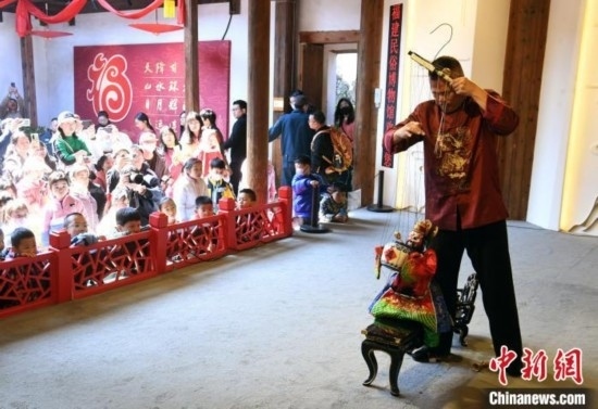 提線木偶表演吸引觀眾。 中新網記者劉可耕攝