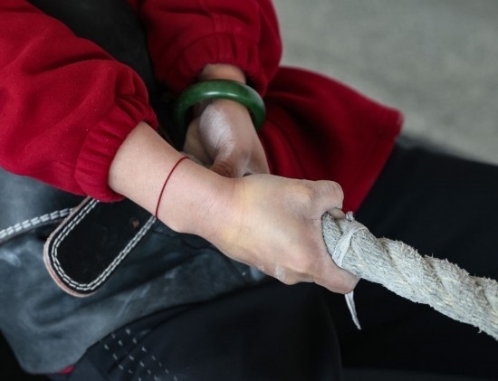 長(zhǎng)期的訓(xùn)練,讓她們每個(gè)人的手掌都經(jīng)歷過(guò)從磨出血泡到反復(fù)脫皮的循環(huán),曾經(jīng)細(xì)嫩的雙手長(zhǎng)滿了老繭。就連訓(xùn)練用的麻繩上,都留有被汗水和血水浸漬的痕跡。