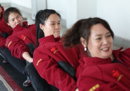 2月29日,鞍鋼集團(tuán)女子拔河隊(duì)教練員谷冬梅(中)在指導(dǎo)隊(duì)員訓(xùn)練。新華社記者 龍雷 攝