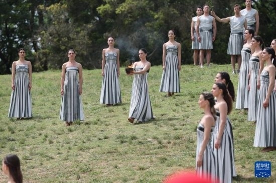 4月16日,扮演最高女祭司的演員瑪麗·米娜取得圣火。當(dāng)日,2024年巴黎奧運會圣火火種采集儀式在希臘伯羅奔尼撒半島的古奧林匹亞遺址舉行。新華社記者李京攝