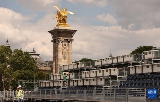 這是6月4日在位于法國巴黎市中心的亞歷山大三世橋拍攝的臨時比賽場地搭建現(xiàn)場。這里將是巴黎奧運(yùn)會多個比賽項(xiàng)目的終點(diǎn),包括公路自行車個人計(jì)時賽、游泳馬拉松、鐵人三項(xiàng)比賽。新華社記者 高靜 攝