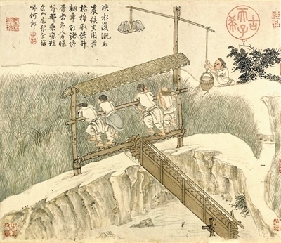 通過(guò)品讀繪畫(huà)中的水利機(jī)具發(fā)展變化,不僅可以直觀感受勞動(dòng)技術(shù)的進(jìn)步,還有助于從古人識(shí)水、用水的智慧中汲取養(yǎng)分。