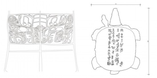 用數(shù)字化手段無損提取青銅器文物的關(guān)鍵信息,圖左為提取的紋樣線圖,圖右為從作冊般黿提取的信息。中國國家博物館供圖