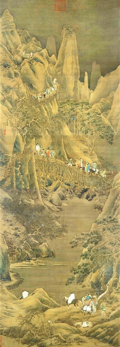 中國畫《劍閣圖》,作者明代仇英。上海博物館藏