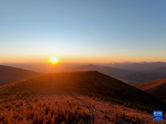 10月7日在河北省承德市豐寧滿族自治縣拍攝的清晨景色(無人機照片)。