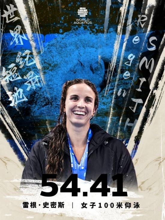 在女子100米仰泳決賽中,美國名將史密斯以54秒41的成績奪得金牌并刷新世界紀錄。