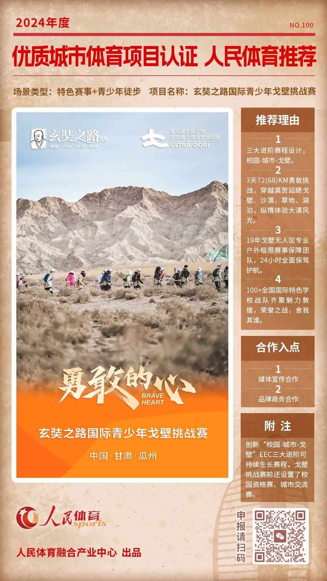 “優(yōu)質體育賽事及活動認證推薦計劃”是人民體育“城市體育產業(yè)高質量發(fā)展計劃”的重要組成部分,人民體育一直致力于攜手權威機構、組織單位等聯(lián)合推薦優(yōu)質項目,項目類型包括且不限于賽事、活動,也涵蓋產品與服務類別。旨在以更客觀的角度,展示在體育產業(yè)發(fā)展中有所創(chuàng)新,有所價值的項目,促進多方相互了解,融合發(fā)展。