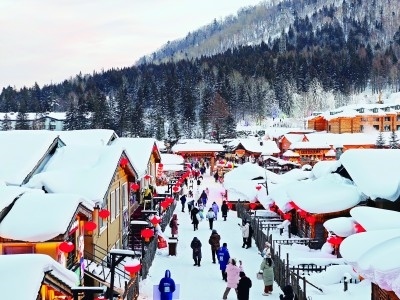 “中國冰雪在龍江,龍江盛雪在雪鄉(xiāng)?!眮碜载惣訝柡睦淇諝饽舷拢c北上的日本海暖濕氣流在此地交匯,造就了雪鄉(xiāng)“夏無三日晴,冬雪漫林間”的獨(dú)特氣候。步入雪鄉(xiāng),獨(dú)特的建筑風(fēng)貌格外引人注目。在厚厚的積雪中,一幢幢小木屋錯(cuò)落分布,像是埋在雪地之中。游客行走在這里,宛如身處冰雪紛飛的童話之鄉(xiāng)。