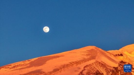 這是在新疆塔什庫爾干塔吉克自治縣慕士塔格冰川公園拍攝的夕陽下的慕士塔格峰(1月12日攝,無人機(jī)照片)。