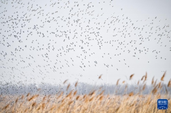 這是2月26日在天津七里海濕地自然保護區(qū)拍攝的“鳥浪”。