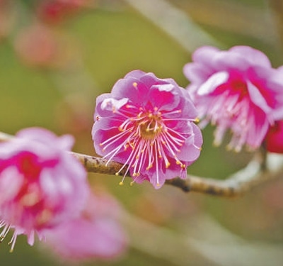 古都南京的早春,總是從東郊梅花山的枝頭開始綻放。風(fēng)還透著寒意,但幾朵“粉紅朱砂”卻悄然掛上枝頭,在風(fēng)中輕輕搖曳。