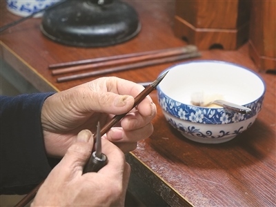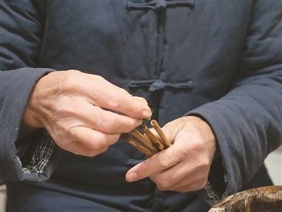 “無(wú)論是制作哪一類(lèi)品種的宣筆,要能實(shí)現(xiàn)‘尖、齊、圓、健’均屬不易,需經(jīng)歷選料、水盆、制桿、裝套等多道工序、100多個(gè)環(huán)節(jié)。”以制桿為例,佘征軍介紹,工人需要先將筆桿磨平,再用工具在筆桿上挖出裝筆頭的洞,這套工藝沒(méi)有特定的參數(shù)可參考,全憑工人的手上感覺(jué)。“學(xué)徒入行,一般3到5年才能完整學(xué)會(huì)宣筆制造流程;要想做出一支優(yōu)秀的宣筆,至少10到12年的學(xué)習(xí)實(shí)踐;而要想學(xué)‘精’,需要一輩子的時(shí)間?!辟苷鬈娬f(shuō)。