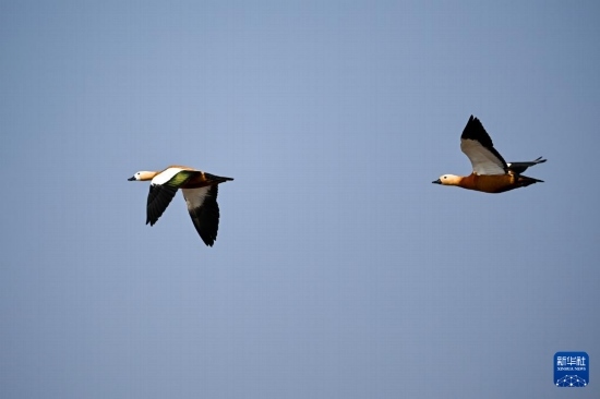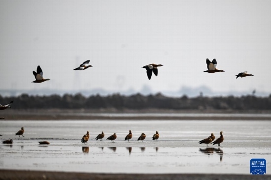 隨著天氣回暖,大批候鳥飛抵內(nèi)蒙古呼和浩特市土默特左旗海流水庫。候鳥時(shí)而休憩覓食,時(shí)而展翅飛舞,給當(dāng)?shù)貛聿鷻C(jī)。