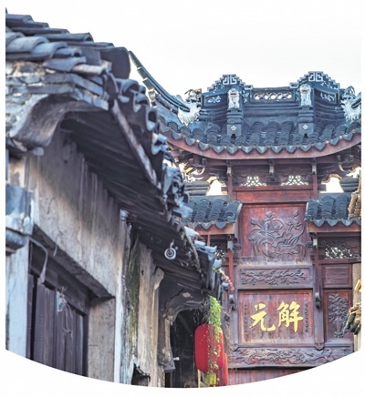 走過陸巷古老的青石街,沿街小店前擺滿了碧螺春茶葉、洞庭紅橘、枇杷膏等本地特產(chǎn),耳畔響著吳儂軟語“枇杷膏”的聲聲叫賣,小吃店的飯菜香也在空氣中彌漫……向前走,穿過明代王鏊解元、會元、探花三座牌樓,折進一條青磚鋪砌的小巷,有著五進院落、兩座花園、雕梁畫棟的惠和堂就藏在深處。