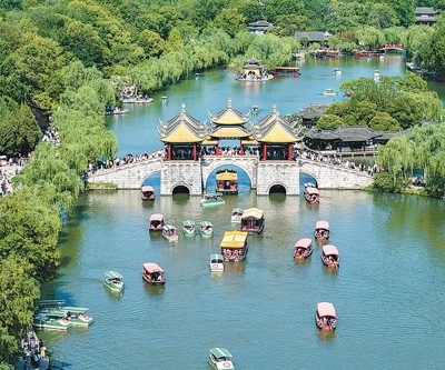 “五一”假期,人們在江蘇揚州瘦西湖景區(qū)游覽。