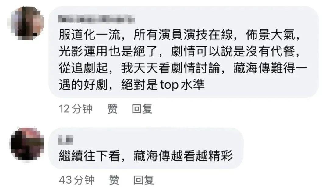 “畫面、場景、演技、情節(jié),各方面都近乎完美,相當(dāng)優(yōu)良的制作”,“服化道一流,演員演技在線,布景大氣”,“感受到了老祖宗的審美”,“連看兩遍,因為很多細(xì)節(jié)值得細(xì)品”……一些臺灣觀眾在“看臺?!焙M馄脚_留言大贊劇集,足見這部叫好叫座的總臺大劇深深吸引了臺灣觀眾。