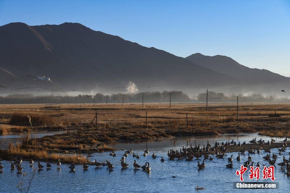 12月20日,西藏自治區(qū)拉薩市林周縣境內的冬日風光。嚴冬時節(jié),拉薩河谷沿線的草甸、山巒、候鳥、寺廟構成一道獨特的風景線。 中新社記者 貢嘎來松 攝
