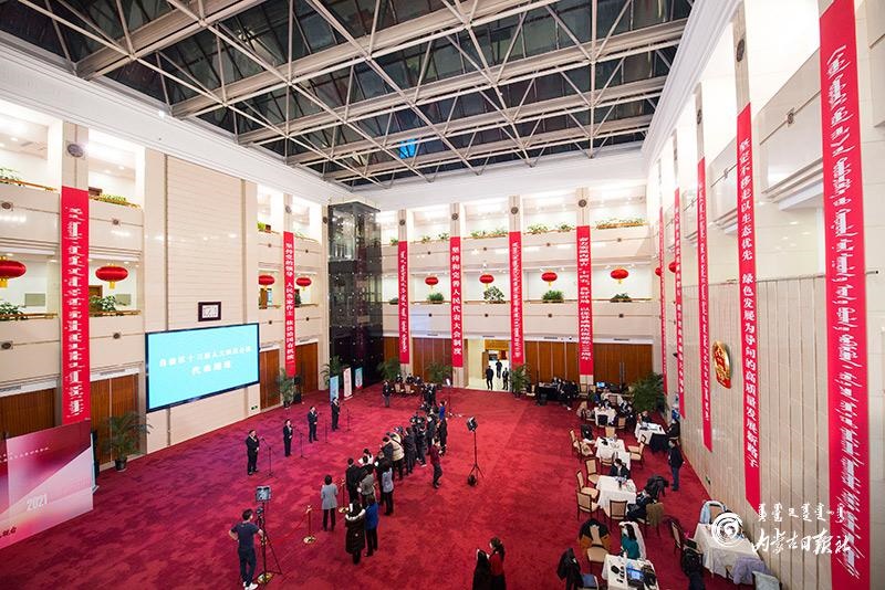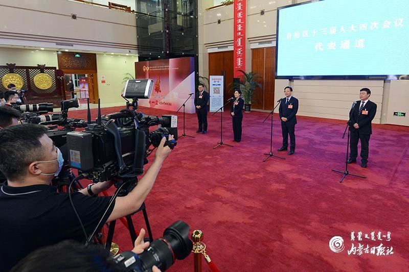 1月27日晚,自治區(qū)十三屆人大四次會(huì)議“代表通道”集中采訪活動(dòng)在內(nèi)蒙古人民會(huì)堂玻璃廳舉行,8位人大代表分兩組“亮相”。這是自治區(qū)人大首次開(kāi)通“代表通道”。內(nèi)蒙古日?qǐng)?bào)記者 金泉 攝