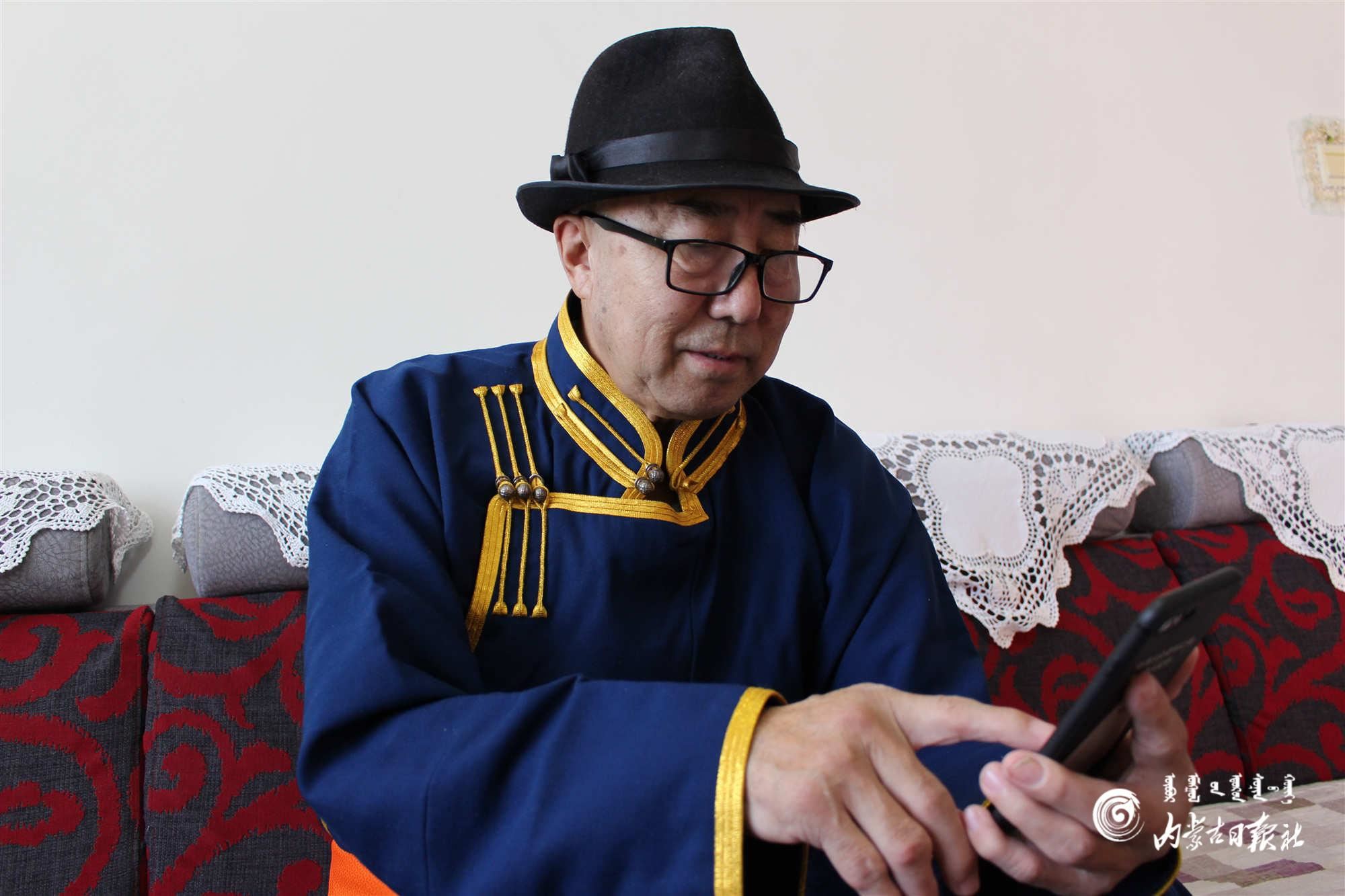 阿拉坦倉老人通過手機了解兩會信息。