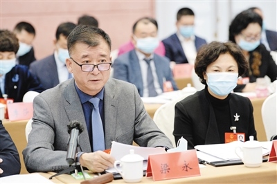 1月26日下午,呼和浩特市代表團(tuán)審議政府工作報告時,阿拉坦倉代表就推進(jìn)國家通用語言文字推廣使用工作提出建議。記者 袁永紅 攝