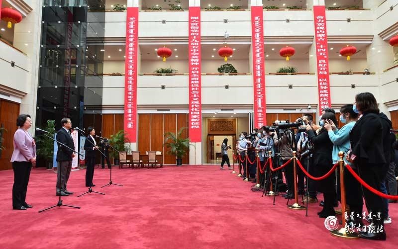 自治區(qū)政協(xié)委員張競回答記者提問。內(nèi)蒙古日報記者 馬建荃攝