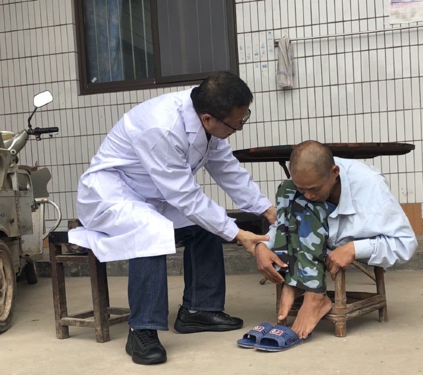 梁益建在病患家中對(duì)其進(jìn)行康復(fù)狀況監(jiān)測(cè)。成都市第三人民醫(yī)院供圖