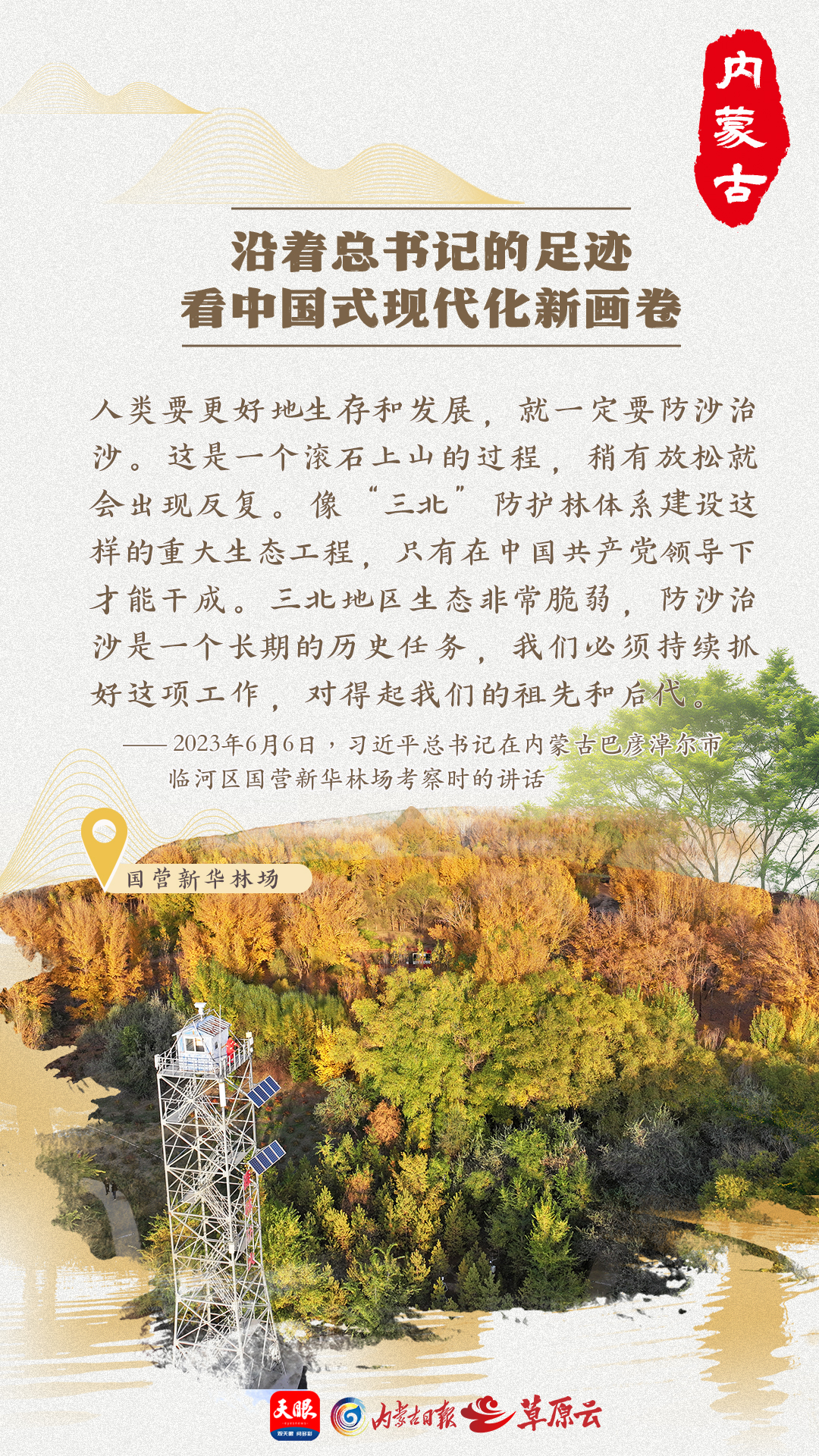 緩步登上30米高的瞭望塔,眼里是一望無際的林木。巴彥淖爾市臨河區(qū)國營新華林場副場長葛文斌深呼一口新鮮空氣,臉上閃現出自豪的表情?!斑@片林子凝結了三代人的心血??!”他禁不住感慨,“這里曾經是一望無際的沙丘、荒灘、鹽堿地,經過60余年的艱苦奮斗,國營新華林場累計造林3.9萬畝、植樹430萬株,讓堿灘變良田、荒漠變綠洲,構筑起祖國北疆重要綠色生態(tài)屏障。”
