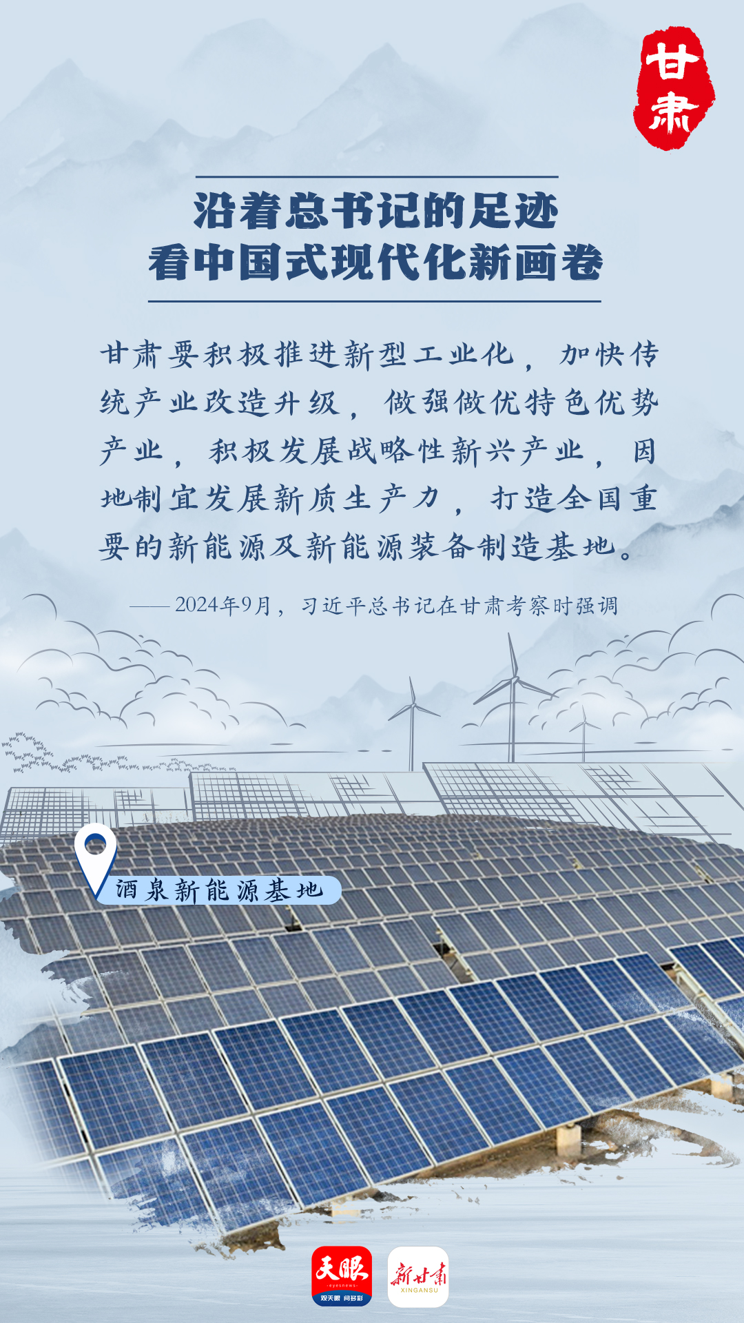 甘肅獲批建設國家新能源綜合開發(fā)利用示范區(qū),新增新能源裝機1258萬千瓦、總量達到6437萬千瓦,裝機和發(fā)電量占比均居全國第2位;新能源及新能源裝備制造業(yè)產值達到830億元;全省電源總裝機歷史性突破1億千瓦……如今,甘肅作為全國重要的新能源和新能源裝備制造基地正在崛起,“風光”大省正向“風光”強省加速跨越。