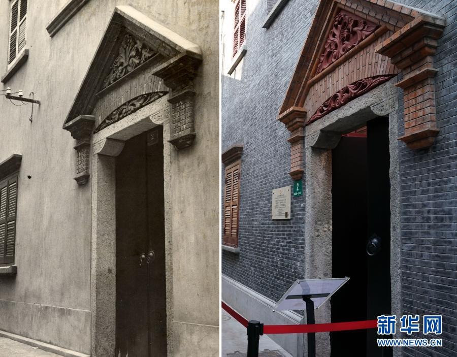 拼版照片:左圖是法租界老漁陽里2號(hào)的歷史照片(上海市檔案館供圖);右圖是1月18日拍攝的南昌路100弄2號(hào)(新華社記者劉穎攝)。新華社發(fā)