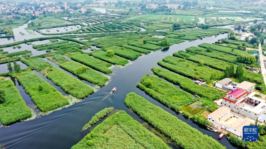 這是白洋淀風(fēng)光(2021年8月14日攝,無人機照片)。