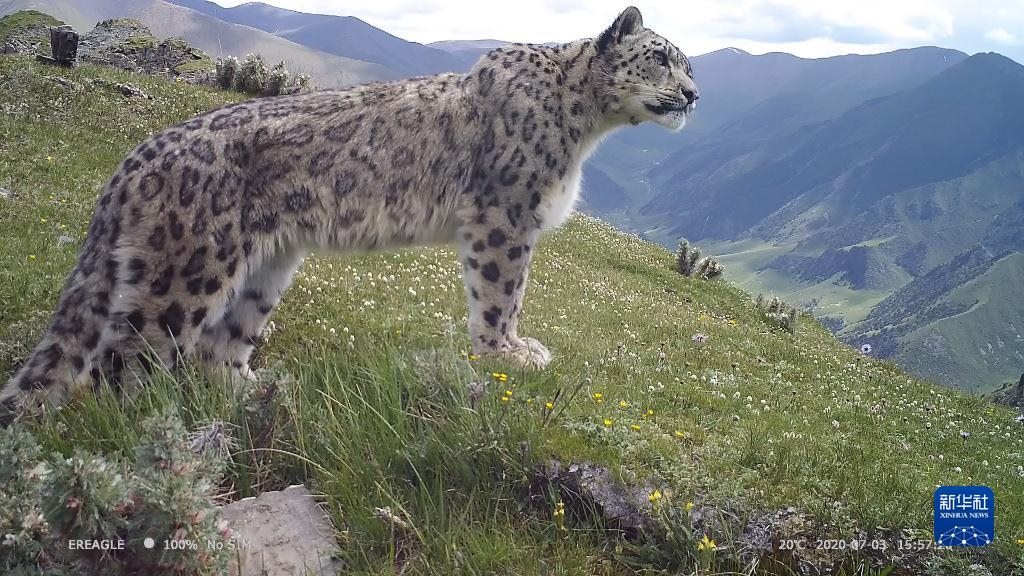 這是三江源國家公園內(nèi)紅外相機捕捉到的雪豹(2020年7月3日攝)。