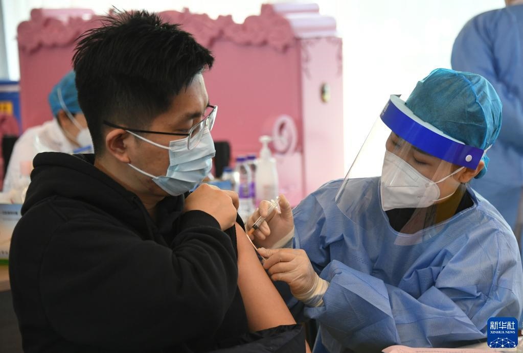 2021年12月7日,北京市海淀區(qū)上地街道組織醫(yī)護(hù)人員來到海國瑞業(yè)科技園,為園區(qū)內(nèi)的企業(yè)員工進(jìn)行新冠疫苗加強(qiáng)針接種。新華社記者 任超 攝