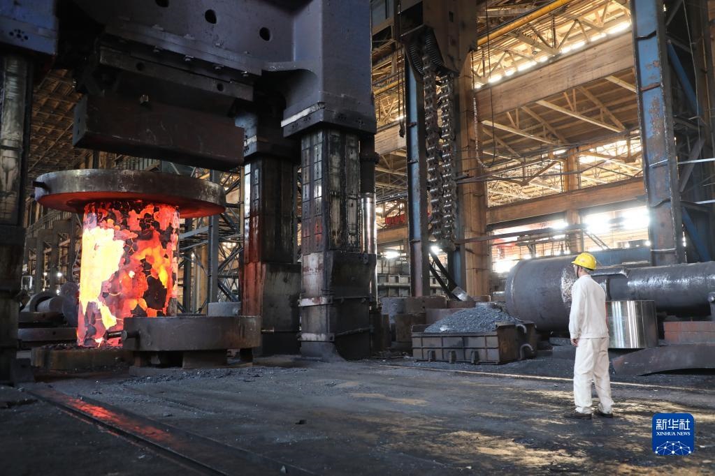 在中國(guó)一重集團(tuán)有限公司,工人在車間內(nèi)忙碌(5月19日攝)。新華社記者 唐鐵富 攝