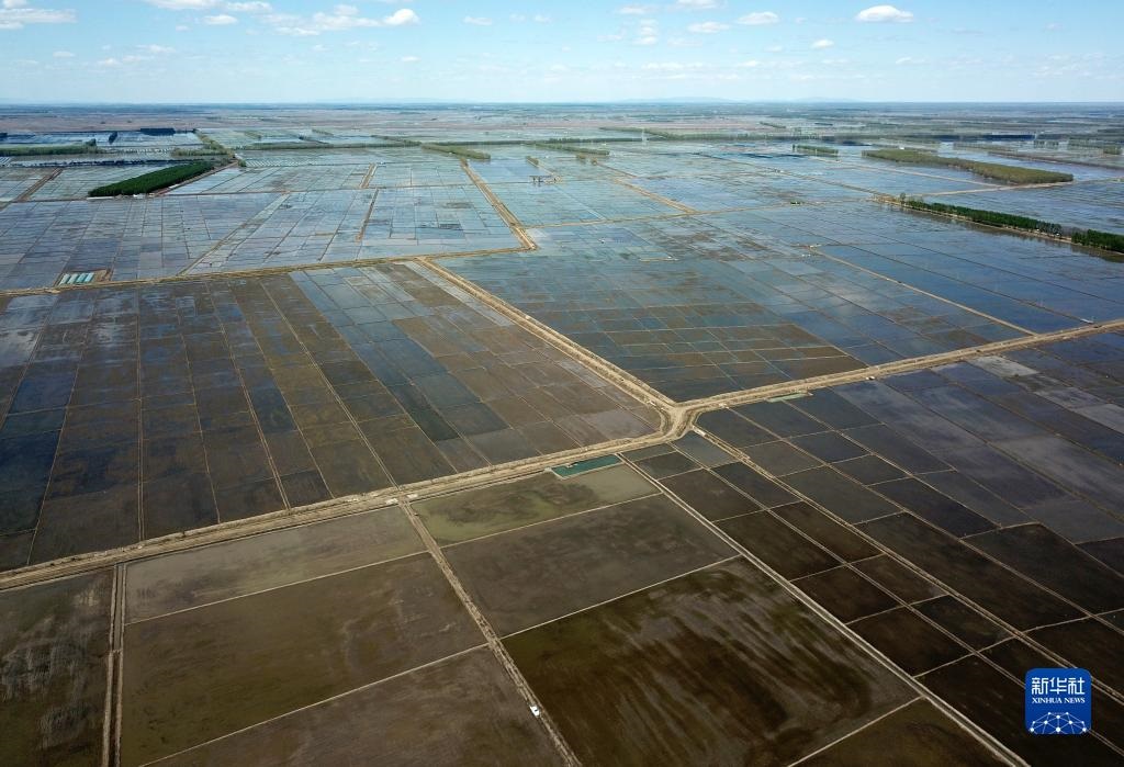 這是5月18日拍攝的北大荒集團(tuán)七星農(nóng)場(chǎng)有限公司的稻田(無(wú)人機(jī)照片)。新華社記者 王建威 攝