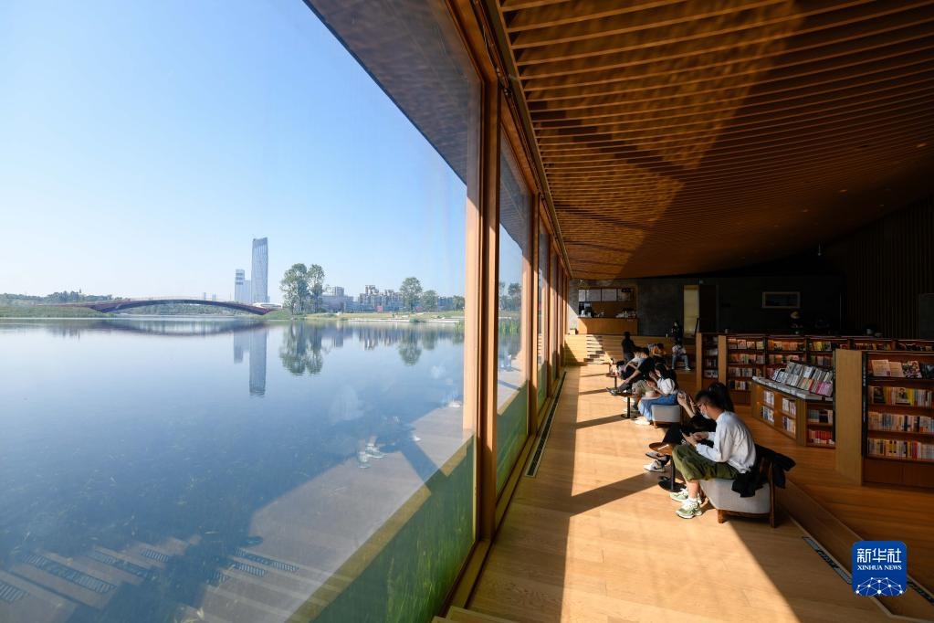 讀者在成都興隆湖畔的中信書店內(nèi)讀書(4月20日攝)。新華社記者 胥冰潔 攝