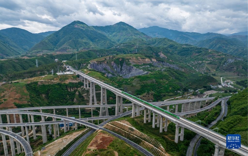 復(fù)興號(hào)列車(chē)通過(guò)中老鐵路元江特大橋(6月1日攝)。新華社記者 江文耀 攝