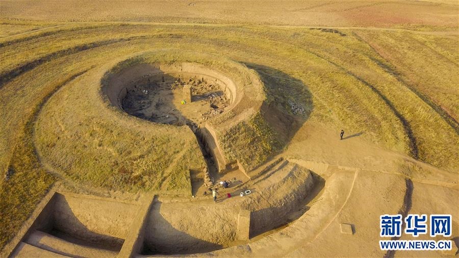 這是10月25日拍攝的呼和浩特市武川縣境內(nèi)的北魏皇帝祭天遺址發(fā)掘現(xiàn)場(chǎng)(無人機(jī)照片)。新華社記者 彭源 攝 -