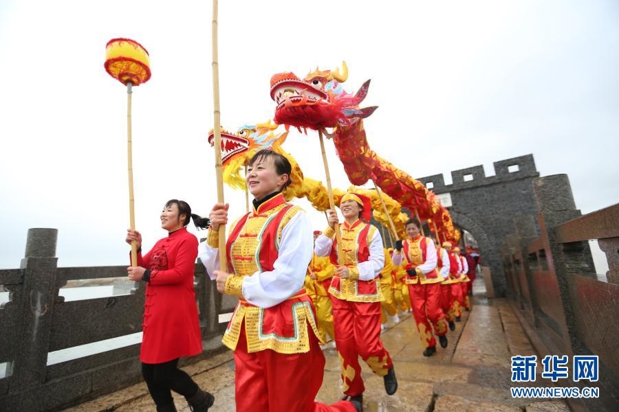 2月25日,江蘇省淮安市洪澤區(qū)岔河鎮(zhèn)舉辦“老街民俗鬧元宵”活動(dòng),民間藝人表演舞龍。新華社發(fā)(陳凱 攝) -