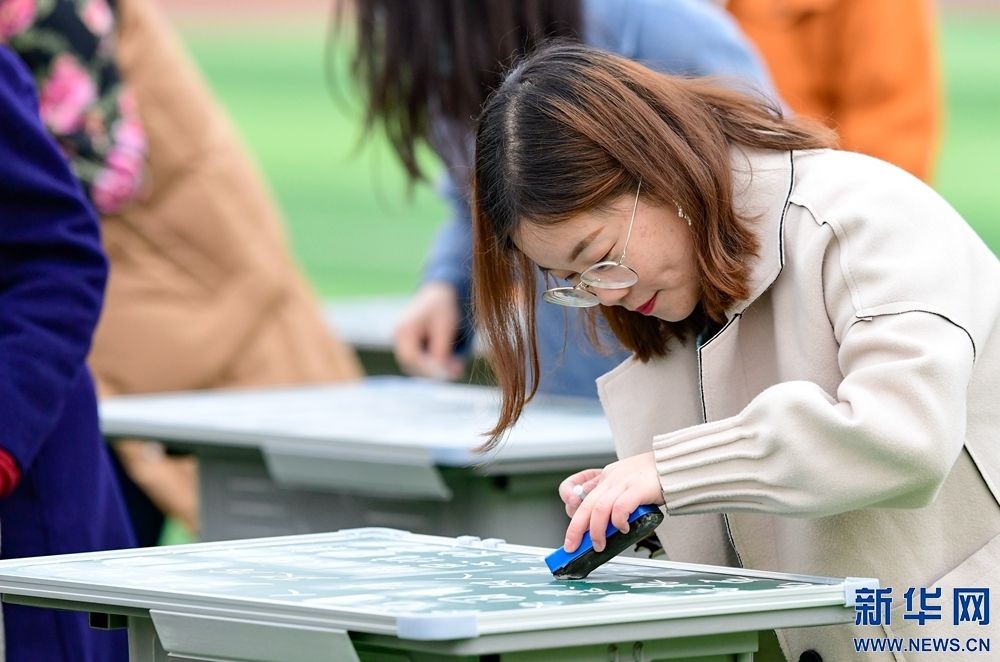 3月8日,呼和浩特市第三十八中學(xué)教師在板書比賽中。新華網(wǎng)發(fā)(王正 攝) -