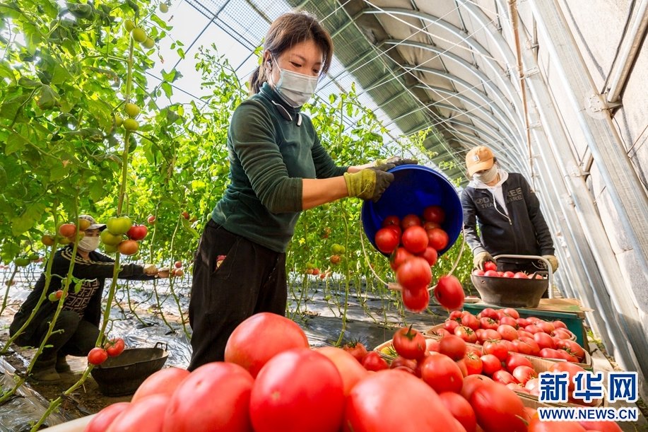 11月17日,農民在呼和浩特市玉泉區(qū)現(xiàn)代農業(yè)示范園采收西紅柿。新華網(wǎng)發(fā)(丁根厚攝)