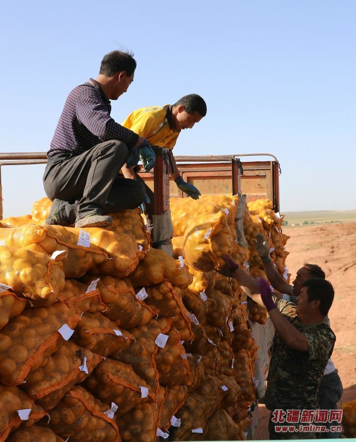 9月18日,呼和浩特市武川縣大魚得水溝村種植戶張永在和霍家溝村種植戶霍飛正在收獲土豆。